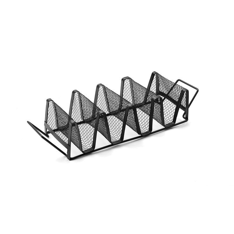 This clever rack holds 4 tacos for easy heating, crisping or grilling on the bbq. Use it with soft or crunchy taco shells. Handles make for easy transport. Get creative and try it to grill corn on the cob, veggie kabobs, racks or ribs and more.