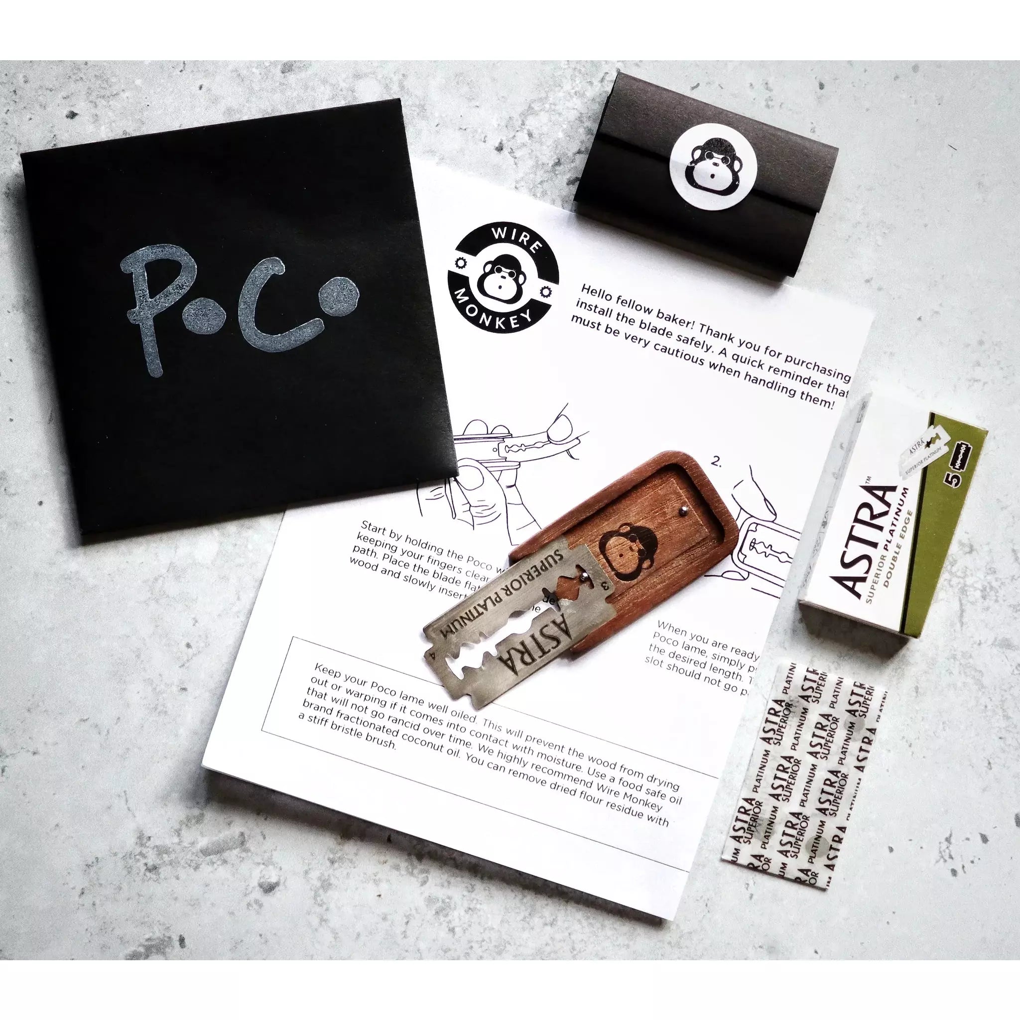Made from solid American black walnut with stainless steel hardware. The blade simply slides out and your thumb holds the blade in place while scoring. Blade tucks back inside for safe storage.