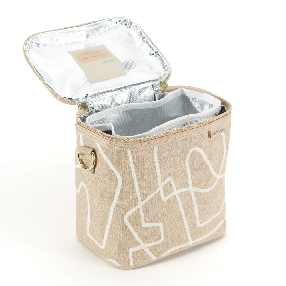 The perfect linen lunch bag! It fits what you need for a healthy desk lunch, or snacks on-the-go. Use it as a mini cooler bag for chill summer hangs at the beach or at the park. Purposefully built to include a removable insert lining for easy cleaning, a messenger strap for 'hands-free' carrying, and an inspirational name tag to remind you to live with intention.