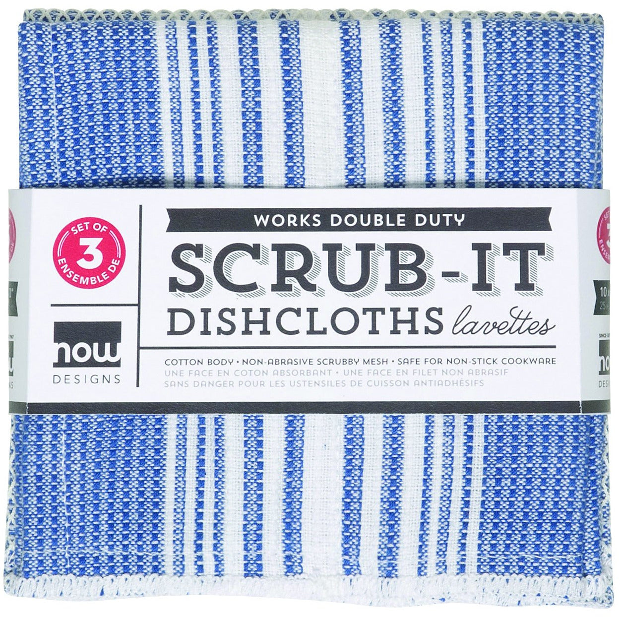 These scrub-it dishcloths work double duty day or night so you don't have to! With soft cotton on one side and the non-abrasive scrubby mesh on the other, it is safe for non-stick cookware.