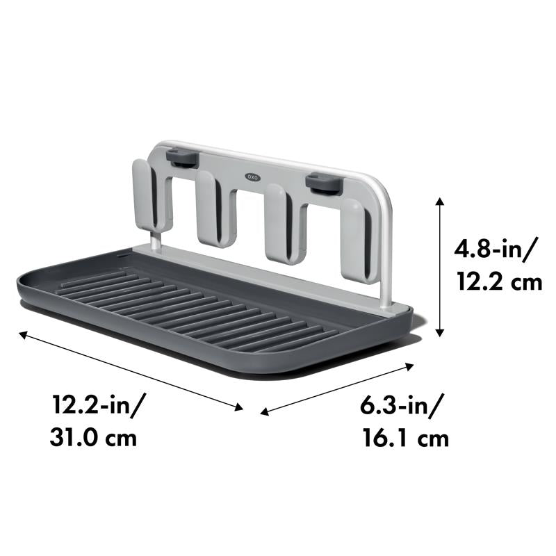 An innovative solution for drying up to 4 water bottles or travel mugs, 4 lids and 4 straws. Keeps reusable water bottles and travel mugs clean and dry. Plus, the unique straw holders keep straws elevated for sanitary and efficient drying. Disassembles for compact storage.